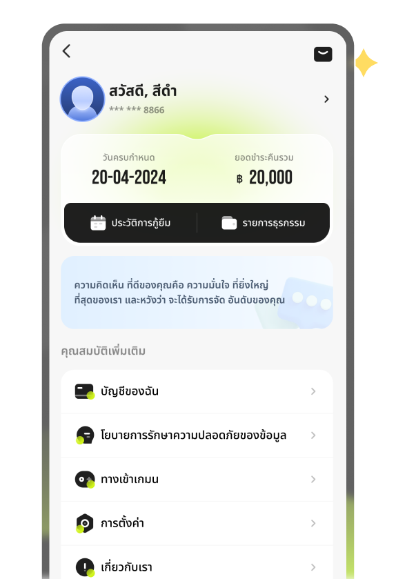 เพียงแค่แชร์ข้อมูลสำคัญที่จำเป็นสำหรับการขอสินเชื่อเงินสด